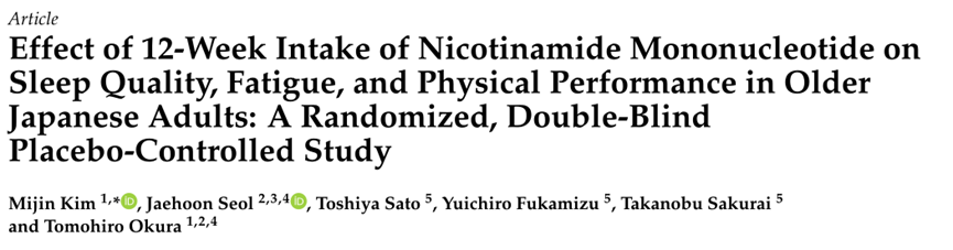 NMN究竟什么时间吃效果最好?这一直是困扰许多NMN服用者的问题,如今,这个问题被日本筑波大学的Okura教授完美地解答了,他于3月11日发表在营养学顶级期刊《Nutrients》上的研究给出了答案,发现下午补充NMN的老年人,其睡眠质量和下肢功能得到改善,且嗜睡和疲劳的情况减少,而上午补充NMN却毫无效果