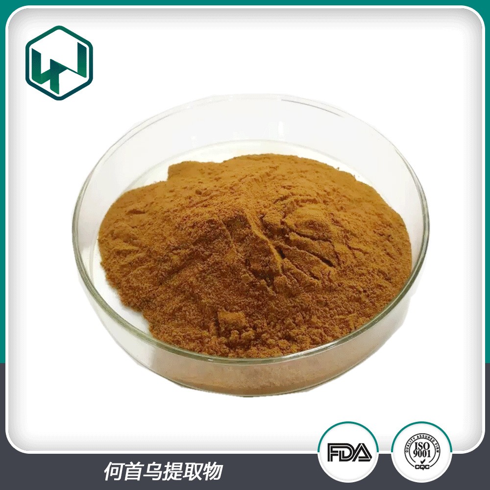为蓼科植物何首乌Polygonum multiflorum Thunb.的块根。植物何首乌为多年生缠绕藤本。根细长,末端成肥大的块根,外表红褐色至暗褐色。茎基部略呈木质,中空。叶互生;具长柄;托叶鞘膜质,褐色;叶片狭卵形或心形,长4-8cm,宽2.5-5cm,先端渐尖,基部心形或箭形,全缘或微带波状,上面深绿色,下面浅绿色,两面均光滑无毛。圆锥花序。小花梗具节,基部具膜质苞片;花小,花被绿白色,5裂,大小不等,外面3片的背部有翅;雄蕊8,不等长,短于花被;雌蕊1,柱头3裂,头状。瘦果椭圆形,有3棱,黑色,光亮,外包宿存花被,花被具明显的3翅。花期8-10月,果期9-11月。
