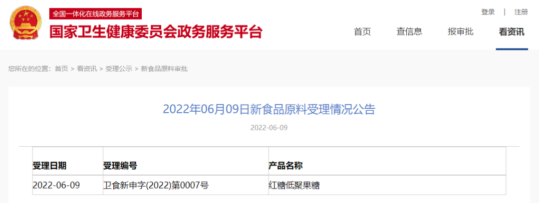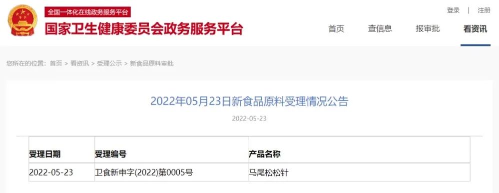 近日,国家卫生健康委员会政务服务平台发布了3款新食品原料受理情况公告,涉及产品是:马尾松松针、文冠果叶、红糖低聚果糖,详情如下。