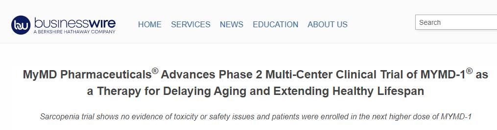 2021年11月16日,致力于延长健康寿命的临床阶段制药公司MyMD所研发的抗衰老药物MYMD-1被FDA批准了其在“抗衰老适应症”上II期临床试验的申请。