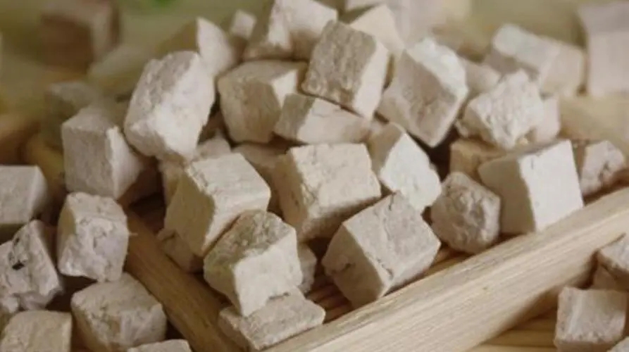 【植物来源】多孔菌科真菌茯苓的干燥菌核切去赤茯苓后的白色部分。