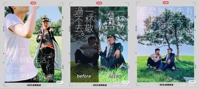 不仅如此,大爷海报上的反差萌表情包和“人间清醒”文案还在小红书引起了热议。