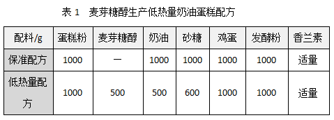 麦芽糖醇在体内几乎不分解,所以可用做糖尿病人、肥胖病人的食品原料。现例举低热量奶油蛋糕配方如表1: