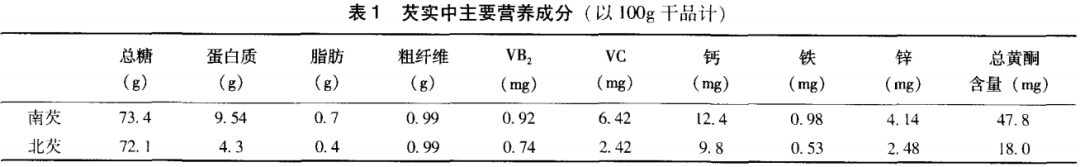 芡实富含膳食纤维、必需氨基酸、矿物质及维生素等(表1),自古就有 “水中人参”之称。