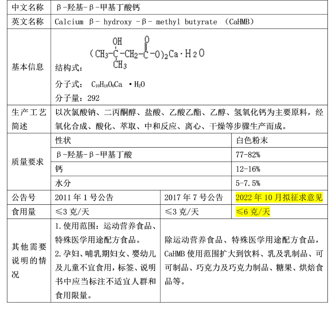 近日,新食品原料β-羟基-β-甲基丁酸钙公开征求意见,拟公告文本见下图。
