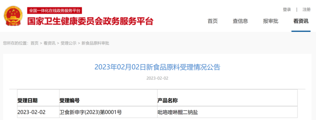 2023年第一个被受理的新食品原料竟然是PQQ(吡咯喹啉醌二钠盐)。2023年第一个被受理的新食品原料竟然是PQQ(吡咯喹啉醌二钠盐)。