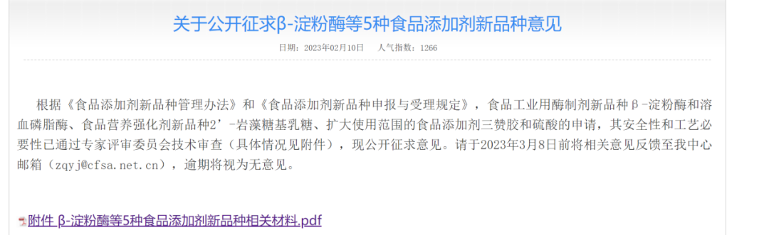 国家食品安全风险评估中心再次发布2′-岩藻糖基乳糖(2′-FL)食品添加剂新品质的征求意见,这是自2016年以来第5次面向公众的征求意见。