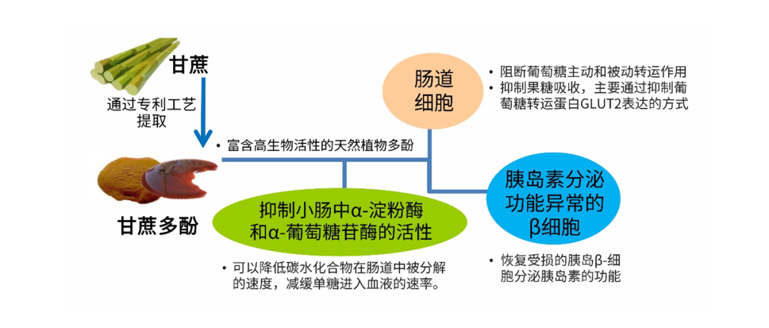 由于具有帮助缓慢升糖的特性,甘蔗多酚一方面能够作为糖尿病患者的专用原料,满足特定人群控制血糖的需求。