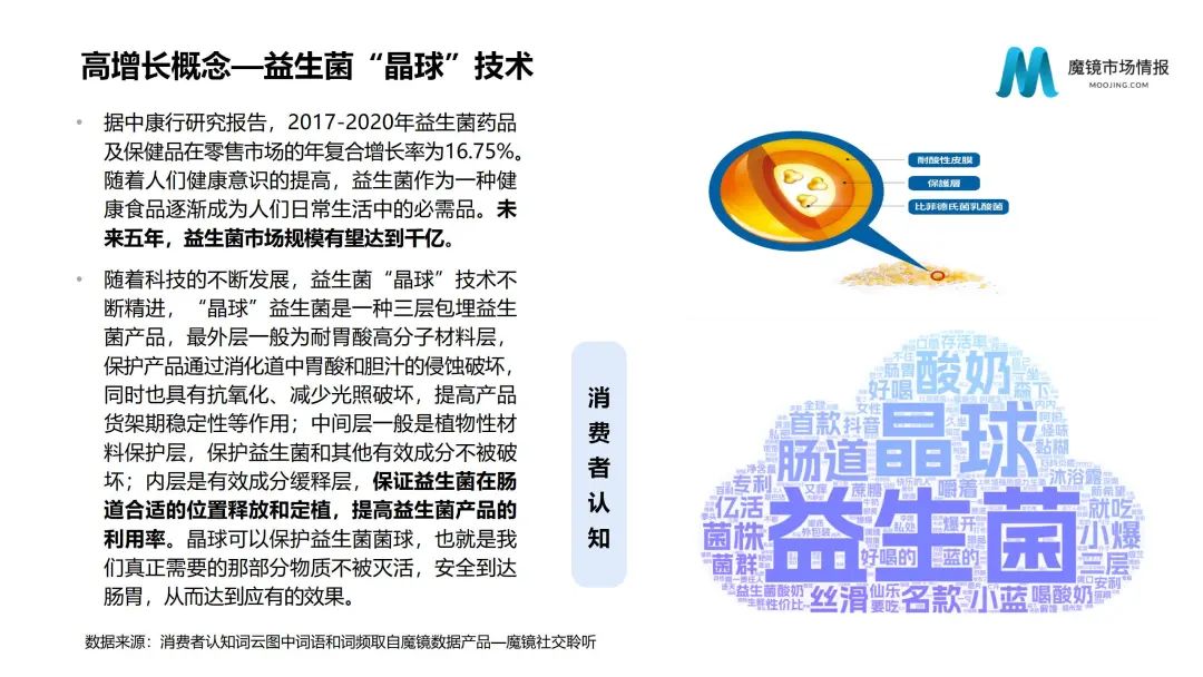 - “晶球”技术很好的解决了益生菌产品菌种活性低的痛点,能够保持菌种活性,满足消费者对健康、品质和性价比的需求。