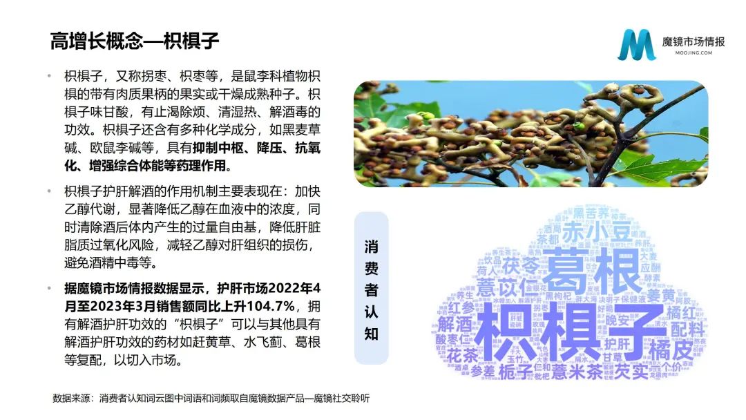 - 健康食品新消费潜力白皮书分析了三种高增长概念:益生菌“晶球”技术,枳椇子和南非醉茄,并从产品、品牌、市场趋势、海外市场等不同方面,全方位分析了它们的市场表现。目的是为品牌主提供健康食品新消费市场的洞察,发现商机,把握趋势,为进入新市场决策提供参考。
