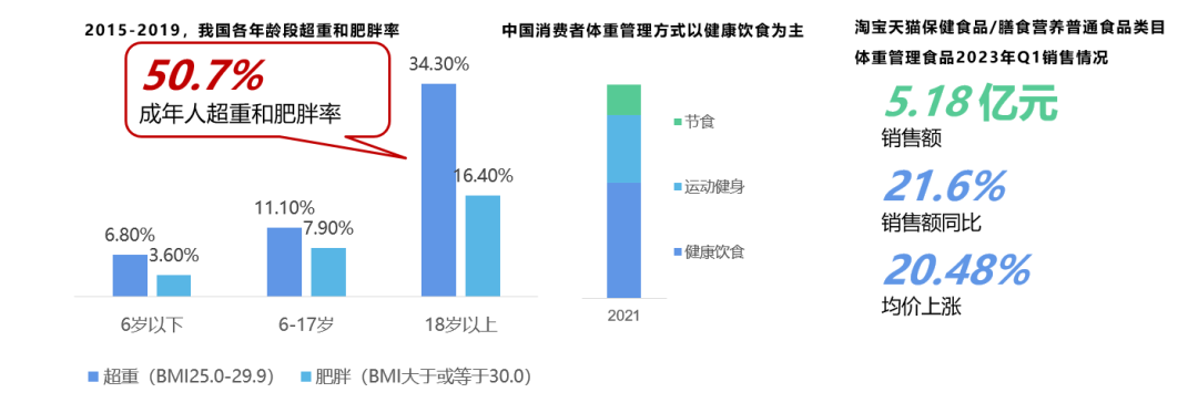 中国的超重和肥胖问题在各个年龄段都比较普遍,尤其是在18岁以上的成年人群中,超重和肥胖的比例分别达到了34.3%和16.4%,远高于世界卫生组织的标准。中国人在面对超重和肥胖问题时,更倾向于采取健康饮食的方式来改善自己的身体状况,有54%的人选择了健康饮食,而运动健身和节食的比例分别只有32%和14%。