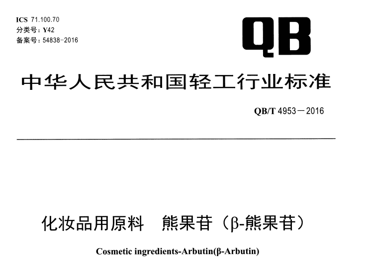截自《QBT 4953-2016 化妆品用原料 熊果苷(β-熊果苷)》
