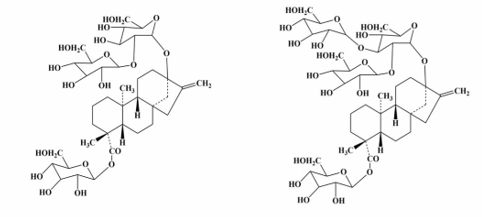 图1 甜菊苷(左)和莱鲍迪苷A(右)的分子结构