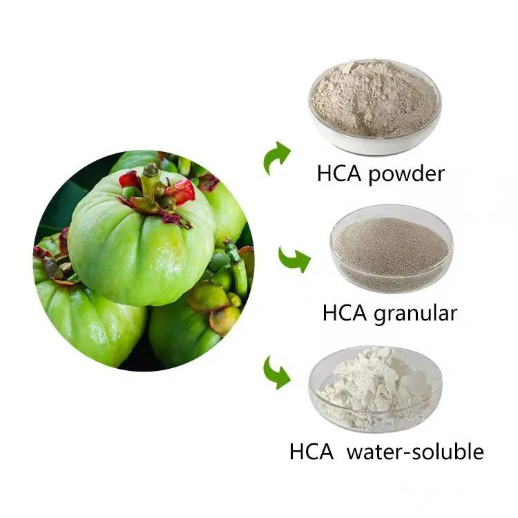 藤黄果提取物是采取藤黄科藤黄属植物藤黄果Garcinia cambogia的干燥果皮,果实成熟后,取果肉、种子,留果皮晒干、阴干。萃取其有效成份HCA(Hydroxy Citric acid;羟基柠檬酸),含有10–30%类似柠檬酸(Citric acid)的物质。藤黄果提取物分为水不溶和水溶性两种,主要在于生产工艺的不同。水溶性产品中含有钾盐、镁盐;而水不溶产品中含有的是钙盐。所以藤黄果提取物灰分较高。