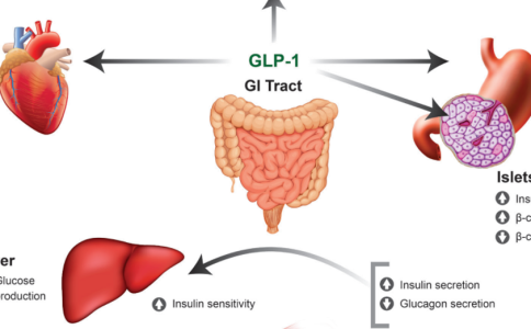 胰高血糖素样肽1(GLP-1)是一种30或31个氨基酸长的肽激素,主要由肠道L细胞分泌。其受体GLP-1R在胰腺中主要表达在胰岛β细胞中,此外还广泛表达在胃、小肠、心脏、肾脏、肺及大脑等组织。