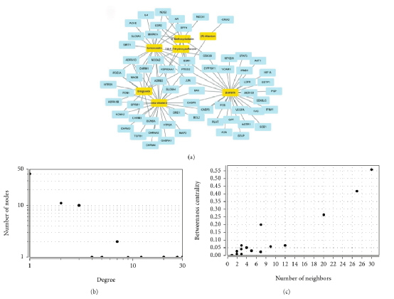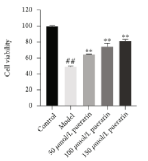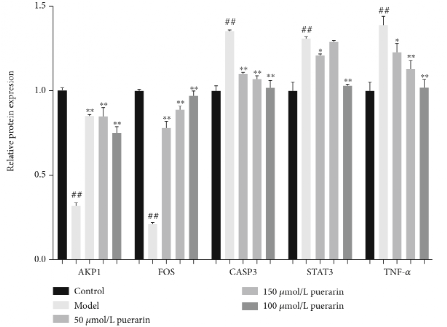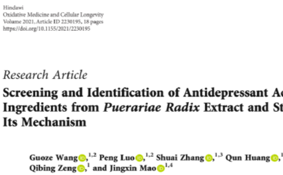 行业资讯葛根提取物抗抑郁活性成分的筛选、鉴定及其作用机制研究 2024-03-08 发布自 magic 08 3 月 抑郁症是一种常见的精神疾病,病程长,复发率高。近年来已有研究表明葛根及其提取物具有较强的抗抑郁作用。本研究提出了网络药理学与分子药理学实验相结合的综合策略,以研究葛根抗抑郁活性成分的作用机制。 作者首先通过TCMSP数据库筛选出OB值≥20%的葛根中的8种有效成分如表1所示。接着检索TCMSP数据库并收集有关基因靶点的信息,在消除重复后,总共获得了与葛根活性成分相对应的99个靶点,并使用Cytoscape 3.7.2软件构建了“复合基因靶点网络”(图1)。 图1 葛根有效成分预测目标网络图及度值和介数中心度分布图 然后使用GeneCards数据库,以“抗抑郁剂”作为关键词搜索,共提取了1596个与抗抑郁剂相关的靶点,与TCMSP数据库中获得的活性化合物相对应的基因靶点相互映射。Venny 2.1软件生成Venn图,最终获得64个共同目标(3.9%)。将数据导入Cytoscape 3.7.2,构建葛根“活性化合物-抗抑郁剂”的靶网络(图2)。 图2葛根抗抑郁药有效成分靶网络及度值分布图和介数中心图 将葛根抗抑郁药物靶点数据导入STRING数据库,构建基因靶点的PPI网络。然后将PPI网络数据导入Cytoscape 3.7.2软件进行可视化分析,设置度>15的阈值,根据度值从高到低选择15个核心目标(表2)。在本研究中,这些核心靶点通过可视化和分析,最终获得葛根抗抑郁相关靶蛋白的完整PPI网络。通过KEGG途径和GO生物过程富集分析和生物注释,对选定的抗抑郁药核心基因进行富集。 葛根抗抑郁的核心靶点 接下来作者用MTT法检测葛根素对皮质酮诱导的PC12细胞损伤的影响。与对照组相比,皮质酮组PC12细胞活力显著降低;与模型组相比,中、高浓度葛根素组PC12细胞活力明显增强,即中高浓度葛根素可显著提高皮质酮在200μmol/L浓度下诱导的受损PC12细胞的活力(图3)。 图3 皮质酮和葛根素分别对PC12细胞活性的影响 使用DCFH-DA探针和活性氧检测试剂盒检测PC12细胞中活性氧的产生。与模型组相比,不同浓度葛根素预处理可显著抑制皮质酮诱导的PC12细胞中的ROS生成(图4c–4e)。结果表明,随着葛根素浓度的增加,活性氧的产生明显逆转。 图4 皮质酮和葛根素分别对PC12细胞活性的影响 PI/Annexin V双染色标记,然后用流式细胞仪检测葛根素对PC12细胞的凋亡率(图5)。与皮质酮组相比,不同浓度葛根素组PC12细胞凋亡率由52.25%降至15.05%。 图5 皮质酮和葛根素分别对PC12细胞活性的影响 最后用Western blotting用于验证葛根素对PC12细胞中AKT1、FOS、CASP3、STAT3和TNF-α等关键靶点的调节作用(图6)。 图6 葛根素对抑郁症相关通路蛋白表达的影响 综上所述,本研究首先提出了综合策略,结合分子药理学实验和网络药理学研究葛根抗抑郁活性成分的作用机制。成功建立了抑郁症样PC12细胞模型。本研究结果表明,葛根中的葛根素是抗抑郁的有效成分。显著提高皮质酮损伤PC12细胞的存活率,降低皮质酮损伤PC12细胞的凋亡率,减少皮质酮诱导的ROS产生。它通过AKT1-STAT3途径发挥作用,增加AKT1和FOS的蛋白表达,减少与抑郁症信号通路相关的CASP3、STAT3和TNF-α的蛋白表达。此外,下一步还需要研究葛根素的最佳剂量和体内效应。本研究揭示了葛根的药效物质基础和可能的抗抑郁机制,为从细胞和分子水平系统研究抗抑郁药物提供了新思路。