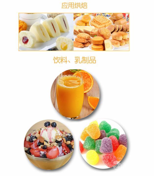 在冰淇淋中使用瓜尔豆胶(0.2%-0.5%)能起到防止颗粒状冰晶形成的作用,同时控制大粒冰晶和乳糖结晶体的生成,提高产品稳定性,特别是抗融性和抗骤热性,在提高口感方便明显优于其他胶体,并能赋予冰淇淋润滑和糯性的口感。