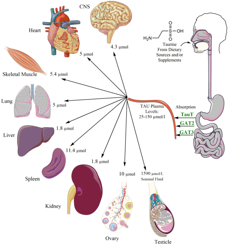 科学界近日震撼发声!先是印度国家免疫学研究所的Vijay K. Yadav团队在《Science》揭示了牛磺酸具有延缓衰老的惊人潜力。紧接着,西京医院樊代明院士团队在顶级期刊《Cell》上发文,再度引发热议:牛磺酸竟能助力肿瘤免疫!作为功能性饮料中常见成分,牛磺酸的功能不可小觑,这一发现必将引领食品饮料行业迎来新的发展机遇,同时也为抗衰等领域的研究开辟了全新的方向。关于牛磺酸的一切1827 年,牛磺酸首次从公牛胆汁中分离获得,又名牛胆碱、牛胆素,是存在于生物体内一种稳定的内源性含硫氨基酸,广泛分布于人和动物的多种组织、器官中,以骨骼肌、心脏、视网膜和胎盘中含量较高。此外,牛磺酸在哺乳动物的乳汁中也存在,是婴幼儿生长发育的必需营养素。