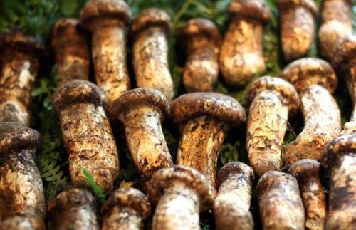 松茸别称松口蘑、松蕈、合菌、台菌等,是世界上珍稀名贵的天然药用菌,被誉为“菌中之王”。