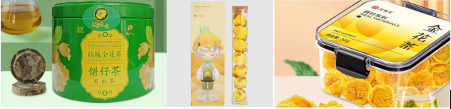 此外,金花茶花朵其他类产品相对较少。有品牌开发了使用金花茶花朵的饮料——金花饮。在配方上添加金花茶花朵外,还搭配了枸杞、栀子、桂花、甘草、决明子等。主打养生。可以说是在传统金花茶茶饮上的继承与升级。另外当地还有金花茶月饼、金花茶炖鸡汤等食品。