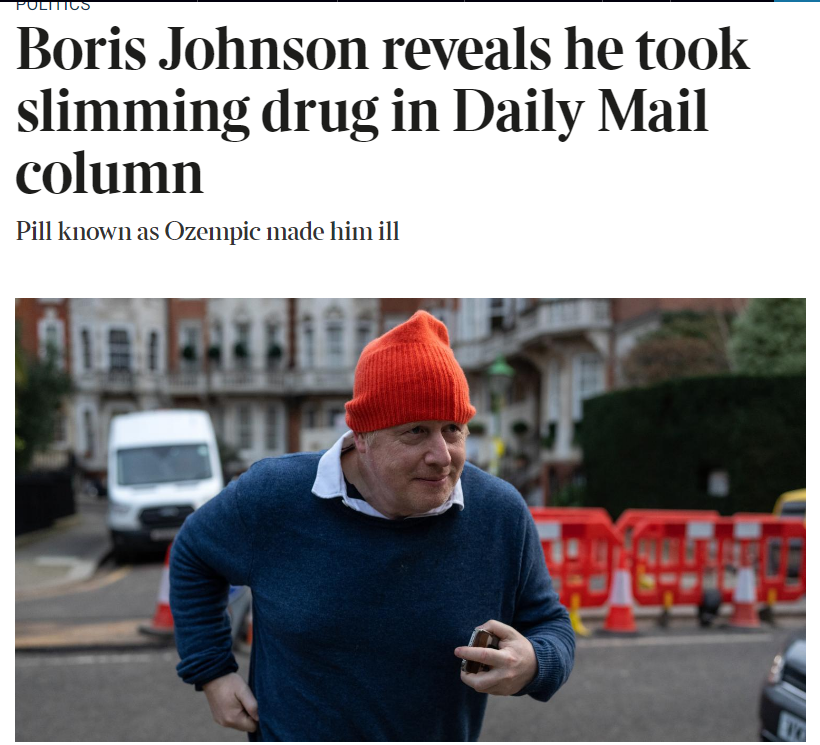 在他的处女作专栏中,约翰逊就迫不及待的分享了他使用司美格鲁肽的个人经历。 作为时任首相,他亲眼目睹了他的同事们经历了显着的减肥转变。对他们可见的身体变化和新发现的下巴线很感兴趣,他咨询了医生以了解他们的方法。