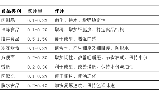 按照中国食品添加剂使用卫生标准,黄原胶可在各类食品中按生产需要适量使用,在一些食品中的用量概述如下:
