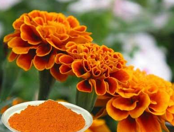 叶黄素属于类胡萝卜素,广泛存在于蔬菜、水果、花卉等生物体中的天然色素,尤其在万寿菊中含量最高,其呈桔红色或橙黄色,主要成分为叶黄素(lutein)和玉米黄质(zeaxanthin)。