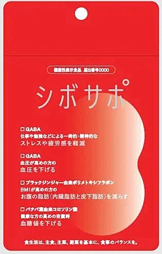 アプロス株式会社推出的シボサポ产品含有GABA、香蕉叶中的科罗索酸和黑姜提取的聚甲氧基黄酮。GABA有助于降低高血压患者的血压,对正常血压者无影响,并能缓解压力与疲劳。科罗索酸能降低健康人的空腹血糖,而聚甲氧基黄酮有助于高BMI人群减少腹部脂肪,促进日常活动中脂肪的消耗。