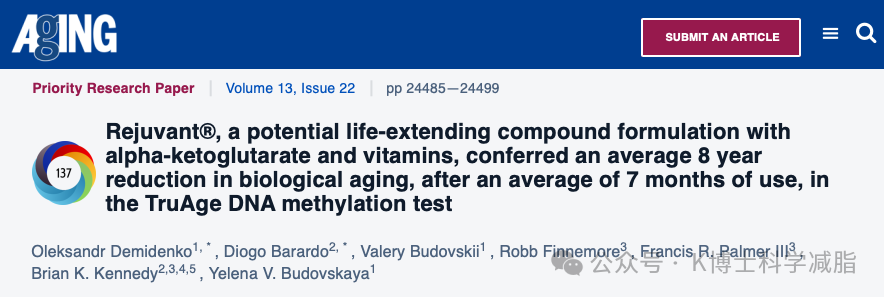根据2021年一项临床研究显示:服用AKG混合补充剂平均7个月(4-10个月),DNA甲基化测出的生理年龄平均减龄8岁。
