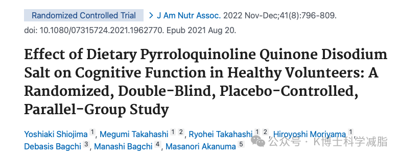 根据另一项随机双盲对照实验:服用12周,PQQ对年轻人和老年人的认知有改善作用。