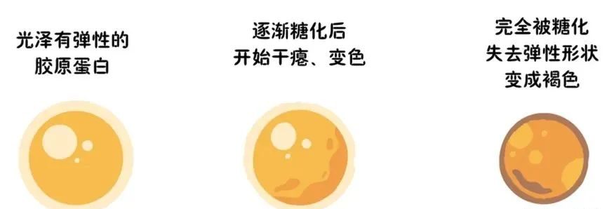 胶原蛋白上有很多的糖基化识别位点,游离的糖分子可以结合上去,这样就会导致胶原蛋白的空间构象发生变化,使其失去了原有的功能,甚至可能会影响其他蛋白正常发挥作用。