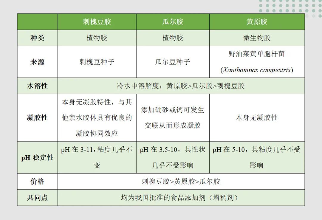 刺槐豆胶、瓜尔胶、黄原胶的区别?