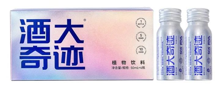 2022年3月注册的新品牌酒大奇迹推出一款解酒的植物饮料,添加山楂、葛根、枳椇子、桑葚和乌梅,主要针对经常需要喝酒应酬的人群。
