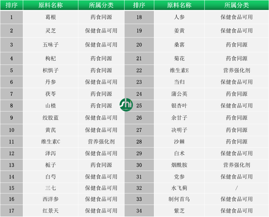本文汇总了保健食品中常用的护肝原料,并根据使用频次进行了排序,使用频次排名前5的原料分别是葛根、灵芝、五味子、枸杞和枳椇子。