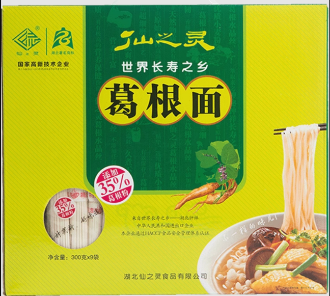 葛根面制品通常是将葛根粉作为功能性配料添加到面制品中,湖北仙之灵食品有限公司推出的葛根面添加35%葛根粉,不仅具有独特的葛根风味,还含有一定的活性成分,符合消费者对于营养健康食品的需求。