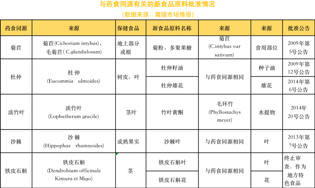 除了目前热点与潜力原料外,还有很多新食品原料也与药食同源有关。