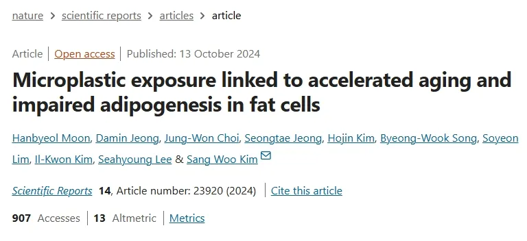 近日发表在《Scientific Reports》上的一篇论文通过的体内和体外实验,全面揭示了微塑料暴露对脂肪组织的多方面影响,包括诱导细胞衰老、放大炎症反应以及损害脂肪细胞分化能力。