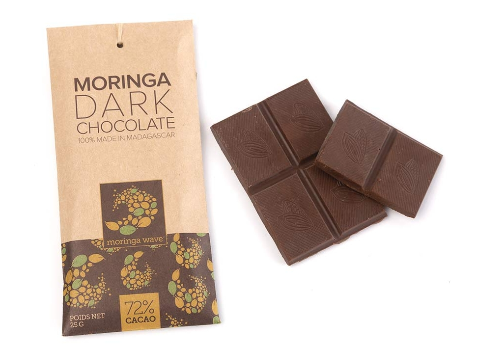 Moringa wave推出了一款辣木巧克力,它不仅保证了巧克力的纯度,同时保留了辣木叶的多种有益功效。
