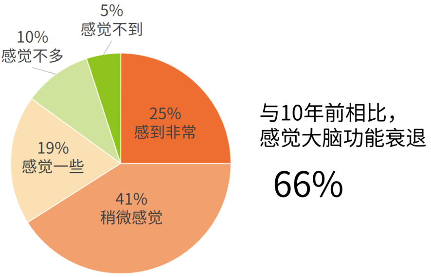 调查结果显示,日本高达66%的职场人士感受到大脑功能有所下降。这一现象在40多岁的女性中尤为显著。