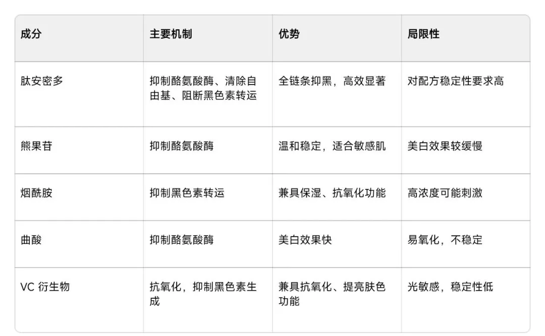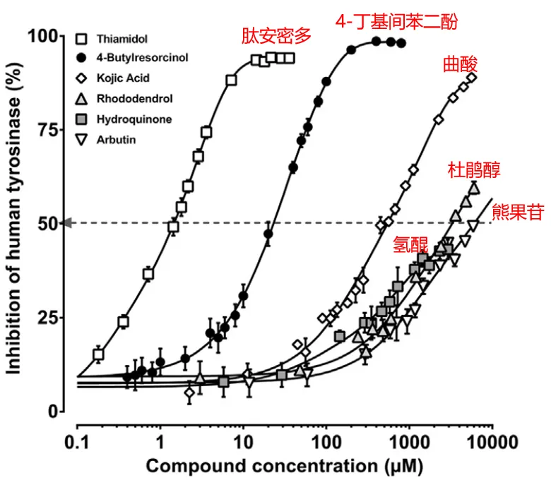 研究表明,肽安密多对酪氨酸酶的抑制作用最强1
