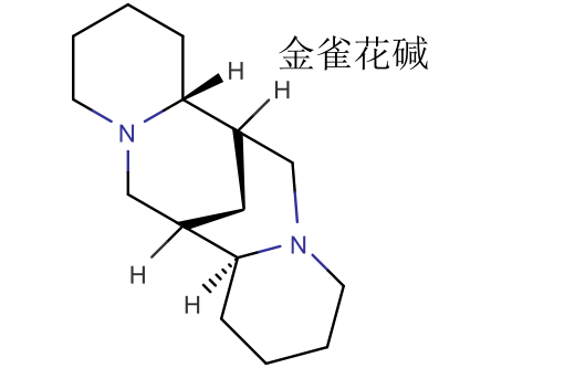 临床用金雀花碱0. 15%水溶液供肌肉或静脉注射,抢救因手术和各种创伤引起的反射性呼吸暂停、休克和新生儿窒息等。近期研究表明,该类生物碱还具有抗心率失常、抗微生物感染、抗溃疡、升高白细胞等多方面的药理作用,特别是该类化合物较强的抗癌活性。
