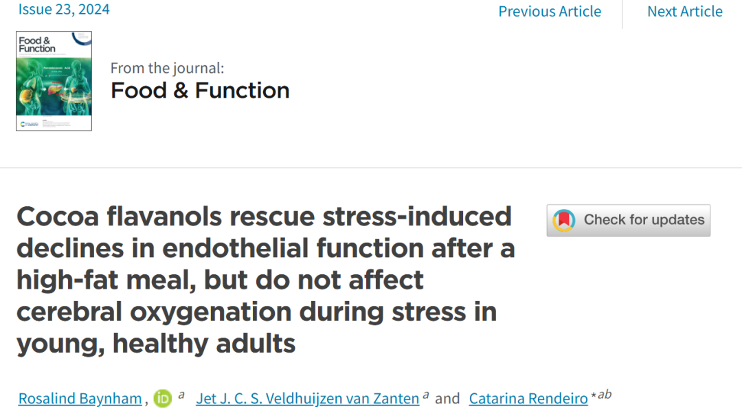 我们知道,当人们感到压力时,他们往往会选择高脂肪食物。而高脂肪食物会损害身体血管从压力中恢复的能力。在2024年, Food and Function上发表的一项研究中则证实了在高脂肪膳食中添加富含黄烷醇的食物可以减轻压力对身体的负面影响。