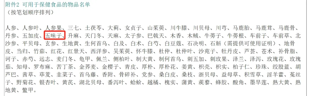 在我国,原卫生部于2002年公布的《可用于保健食品的物品名单》中,五味子是其中一员。