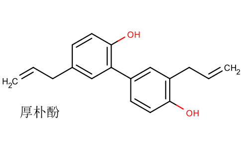厚朴提取物是以厚朴Magnolia officinalis的树皮为原料提取制成的产品。其标志性成分主要为厚朴酚(Magnolol)及和厚朴酚(Honokiol)和厚朴酚 厚朴酚分子式:C18H18O2 分子式:C18H18O2分子量:266.32 分子量:266.32