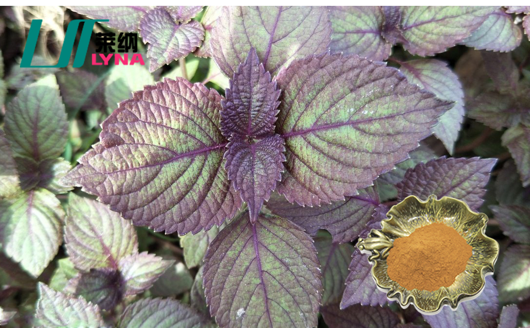 紫苏提取物为唇形科紫苏属植物皱叶紫苏的叶为原料提取。紫苏别名赤苏、红苏、红紫苏、香苏,在我国有着悠久的种植历史和广泛的种植范围,是卫生部首批颁布的既是食品又是药品的60种“药食同源”品种之一。大量的研究表明,植物多酚和大多数黄酮类化合物分子结构中含有大量的酚羟基,这些酚羟基通过作用于微生物的细胞亚结构而具有广谱的抑菌作用。紫苏提取物因富含植物多酚类物质和黄酮类化合物,表现出很强的抗氧化活性、抑酶特性和抑菌特性,是一种高效、低毒的天然食品防腐剂。