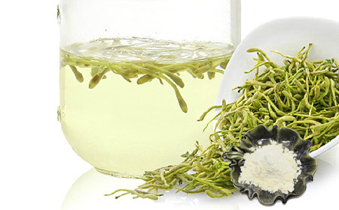 6、金银花茶味甘,性寒,具有清热解毒、疏散风热的作用。金银花有清热解毒、疏利咽喉、消暑除烦的作用。可治疗暑热症、泻痢、流感、疮疖肿毒、急慢性扁桃体炎、牙周炎等病。