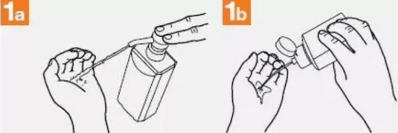 ①取适量免洗手消毒剂于掌心,涂满整个手部皮肤。