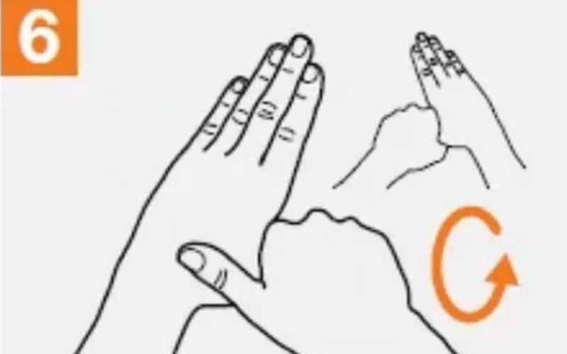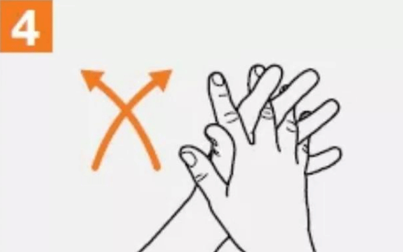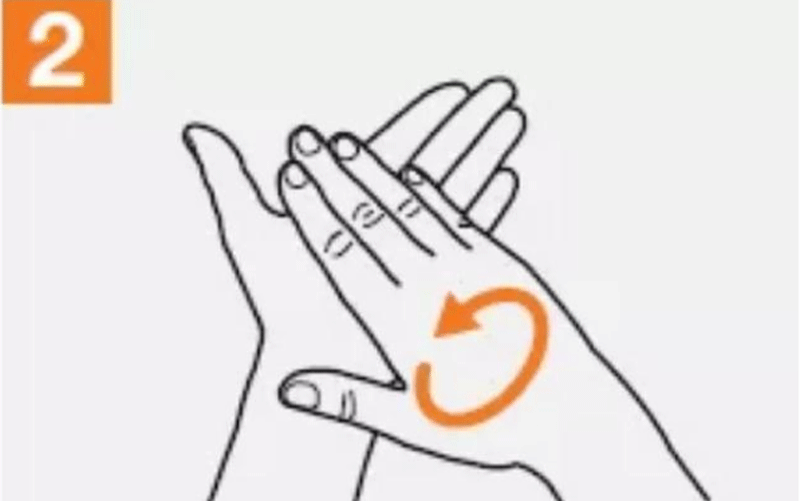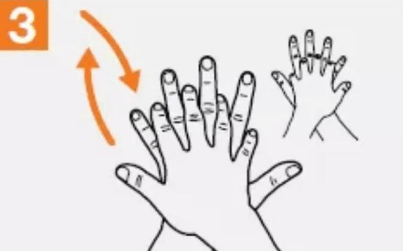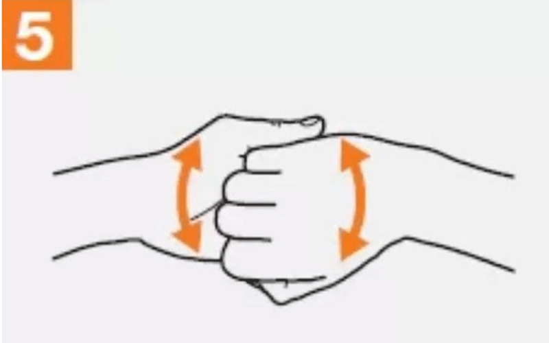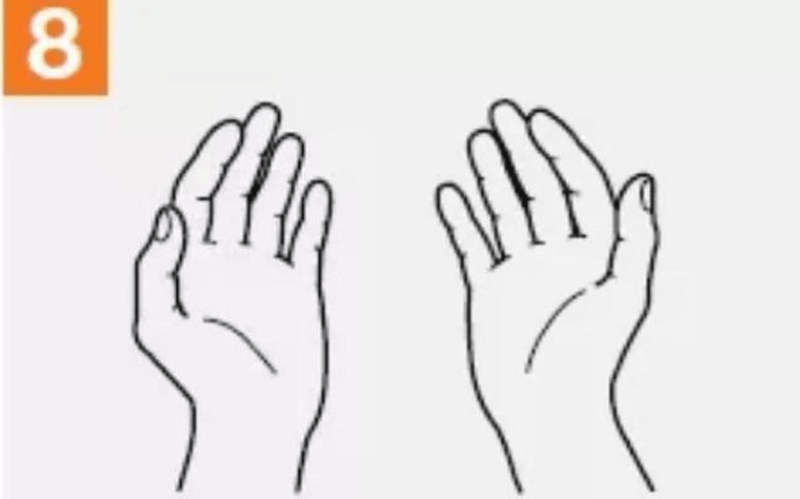 ⑤弯曲手指,一手指背对另一手掌心,相互旋转揉搓。