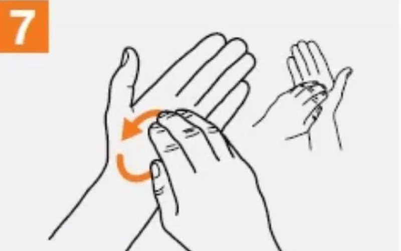 ⑦五指指尖并拢贴于另一掌心,旋转揉搓。